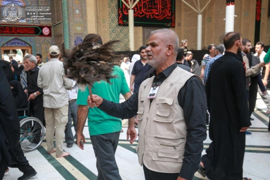 وأكمل مسؤول شعبة المتطوعين "تم تنظيم عملية توزيع المجاميع التطوعية إلى (قسم الشؤون الخدمية، وقسم حفظ النظام الداخلي بالخصوص عمليات تفتيش حقائب الزائرين وتنظيم انسيابية دخولهم إلى الصحن الحيدري الشريف، والشؤون النسوية وخدماتها المختلفة، ومواقع الاستراحة والضيافة الخارجية في المداخل الرئيسية في جنوب وشمال مدينة النجف الأشرف، ومدن الزائرين، وقسم الشؤون الدينية، ووحدة دليل الزائر وارشاد التائهين، والخدمات المقدمة في صحن فاطمة (عليه السلام) والصحيات، وقسم السلامة المهنية والصحة والبيئة، وغيرها من الخدمات المختلفة".