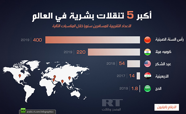 نشر موقع قناة RT الروسية، ما سماها (أكبر خمسة تنقلات بشرية في العالم).