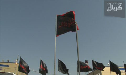 العتبة العباسية ترفع أطول راية لأبي الفضل العباس عليه السلام على طريق نجف- كربلاء