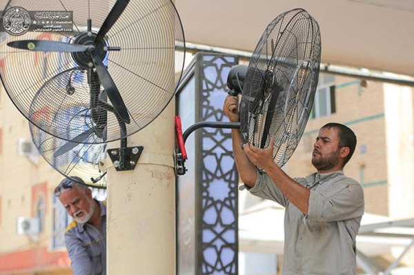 باشرت شُعبة منظومة الرذاذ والتعطير التابعة إلى قسم الورش في العتبة العلوية المقدسة بتركيب عدد من المراوح في صحن الإمام الحسين (عليه السلام ) وعند أبواب الصحن المطهر والشوارع الرئيسة المؤدية إلى مرقد أمير المؤمنين (عليه السلام)".