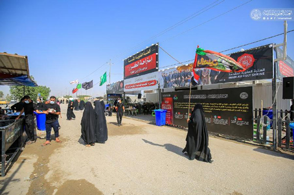وأضاف الكرماني " إن أحد أهم هذه المواقع هي استراحة الكرار الواقعة في طريق النجف – المناذرة عمود (٩٩) وتستقبل الزائرين الوافدين من جنوب مدينة النجف الاشرف وتتضمن تقديم عدد من الخدمات للزائرين الكرام، منها توفير المياه الصالحة للشرب من معمل مياه نبع العتبة وتقديم العصائر بكافة أنواعها وتقديم وجبات الطعام وعلى مدار الساعة، حيث يتم التوزيع منذ ساعات الصباح الأولى وحتى ساعات متأخرة من الليل، فضلا عن وجود مفارز طبية تابعة الى قسم السلامة المهنية والصحة والبيئة في العتبة المقدسة واجبها تقديم الخدمات الطبية والإرشادات الصحية والإسعافات الأولية للزائرين.