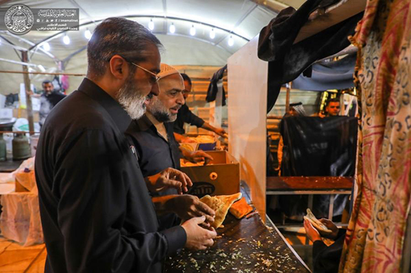وأضاف" نتشرف بخدمة الزائرين الكرام يومياً وعلى مدى ٢٤ ساعة متواصلة في تقديم (١٥) ألف وجبة بواقع وجبتي فطور، ووجبتين للغداء والعشاء في اليوم الواحد تتخللها توزيع العصائر والفواكه الطازجة والشاي، فيما يتشرف بخدمة الزائري في الموقع الجديد نخبة من منتسبي العتبة العلوية المقدسة العاملين في دار الضيافة والمتطوعين المنتمين إلى المواكب الحسينية ".