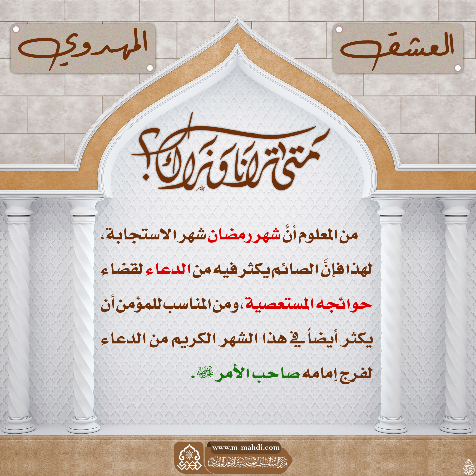 بسم الله الرحمن الرحيم اللهم كن لوليك الحجة بن الحسن صلواتك عليه وعلى آبائه في هذه الساعة وفي كل ساعة وليا وحافظا وقائدا وناصرا ودليلا وعينا حتى تسكنه ارضك طوعا وتمتعه فيها طويلا