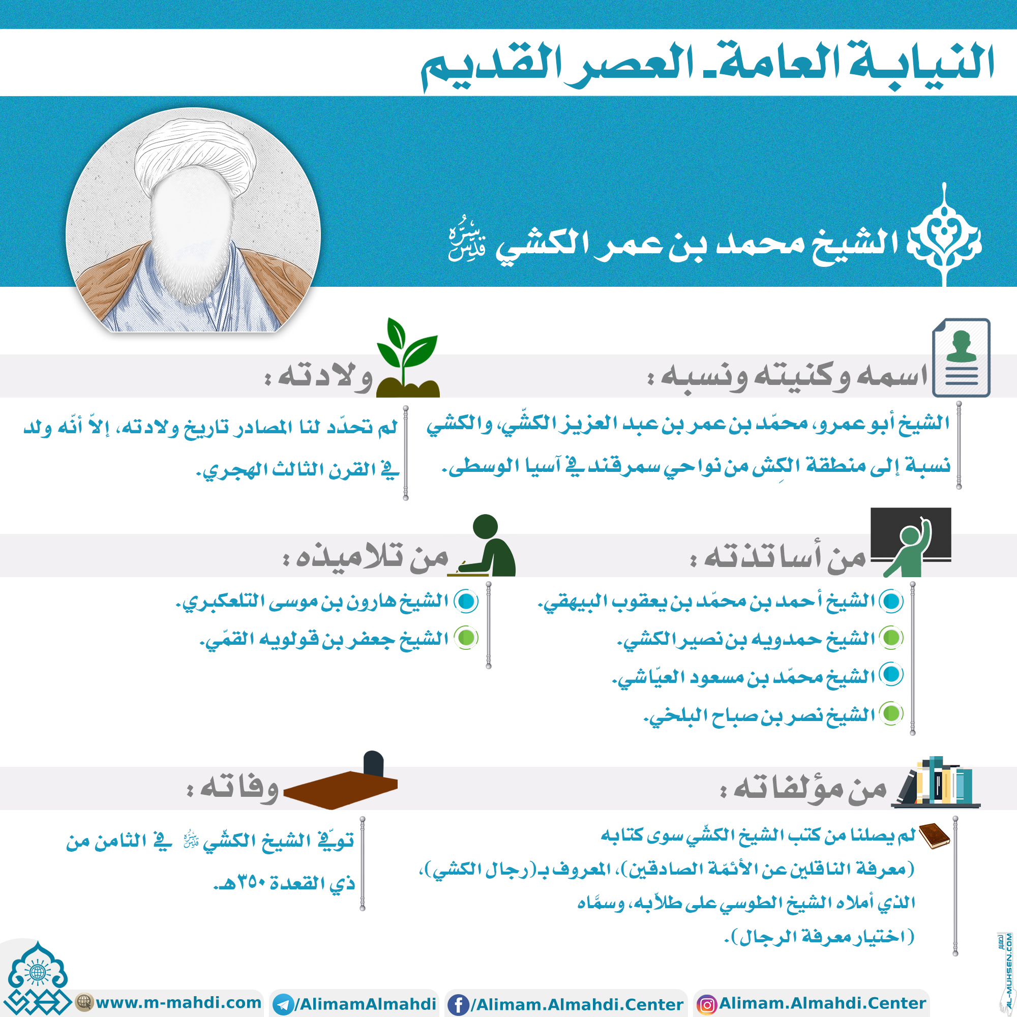 الشيخ أبو عمرو، محمّد بن عمر بن عبد العزيز الكشّي، والكشي نسبة إلى منطقة الكِش من نواحي سمرقند في آسيا الوسطى.