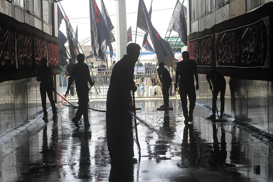وتابع سالم قائلاً: "أمّا ما يخصّ الجانب الخدميّ فتمثّل بتنظيف الطرق التي يسلكها الزائرون، بالإضافة الى الاعتناء بالمدن التي تمّ إنشاء المخيّمات فيها (مدينة العلقمي – المضيف الخارجيّ)، بالإضافة الى تعطير الزائرين مع وجود فرقةٍ خاصّة مكلّفة بسقي الزائرين الكرام بالماء ومساعدة خدّام المدن بطهي الطعام وتوجيه الزائرين الى مقاصدهم".
