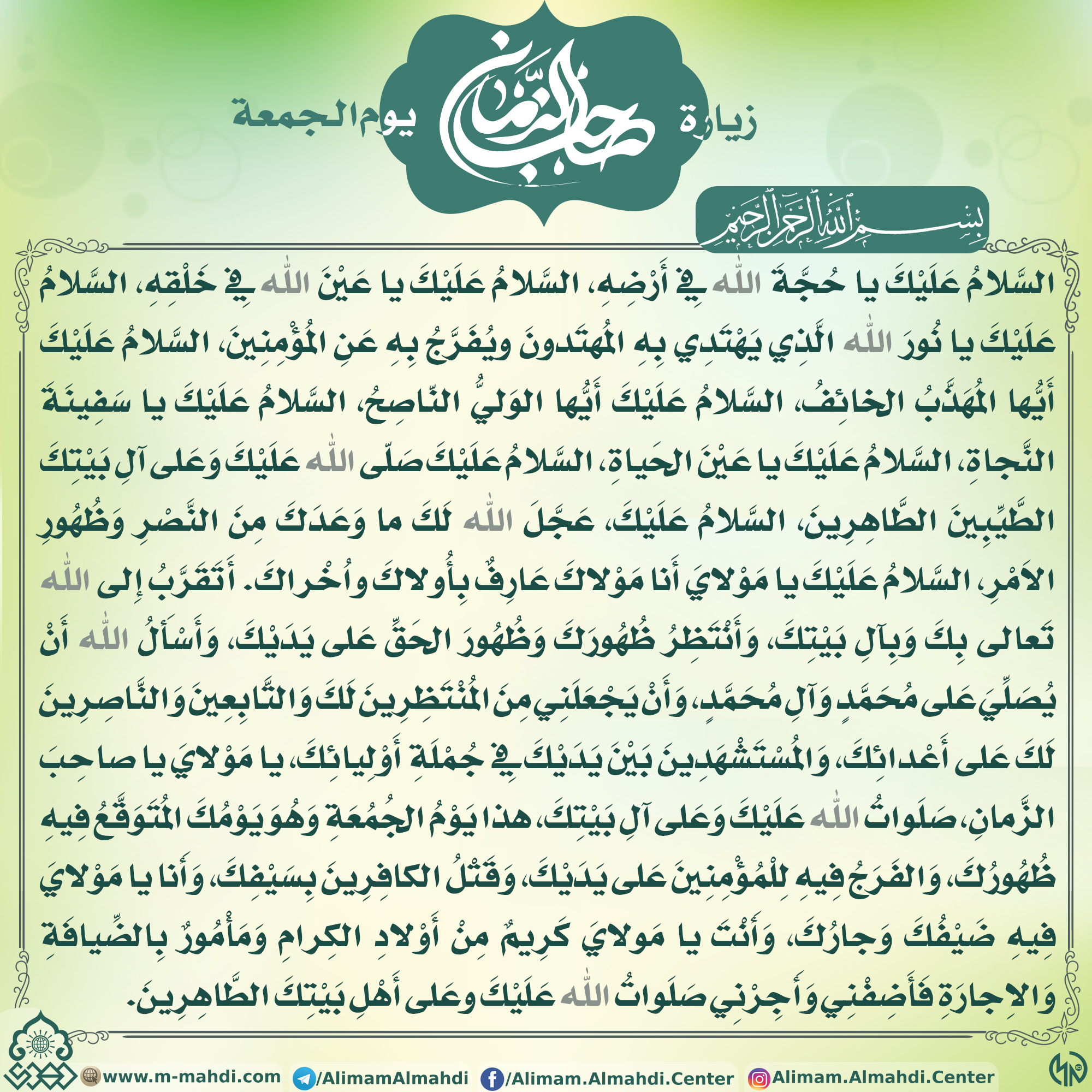 زيارة الامام المهدي عليه السلام في يوم الجمعة