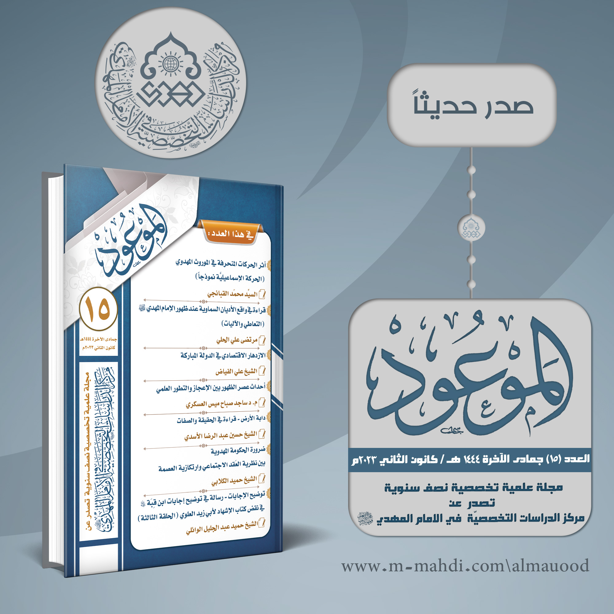 صدر حديثاً العدد (١٥) من مجلة الموعود الصادرة عن مركز الدراسات التخصصية في الإمام المهدي (عجّل الله فرجه) لشهر جمادى الآخرة سنة ١٤٤٤هـ / تموز ٢٠٢٣م