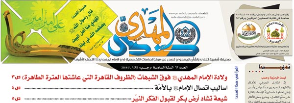 صحيفة صدى المهدي عليه السلام صحيفة شهرية تعنى بالشأن المهدوي تصدر عن مركز الدراسات التخصصية في الامام المهدي عليه السلام
