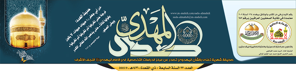 تم صدور صحيفة صدى المهدي عليه السلام العدد ٧٧ السنة السابعة/ ذي القعدة/ ١٤٣٦هـ - ٩/ ٢٠١٥م