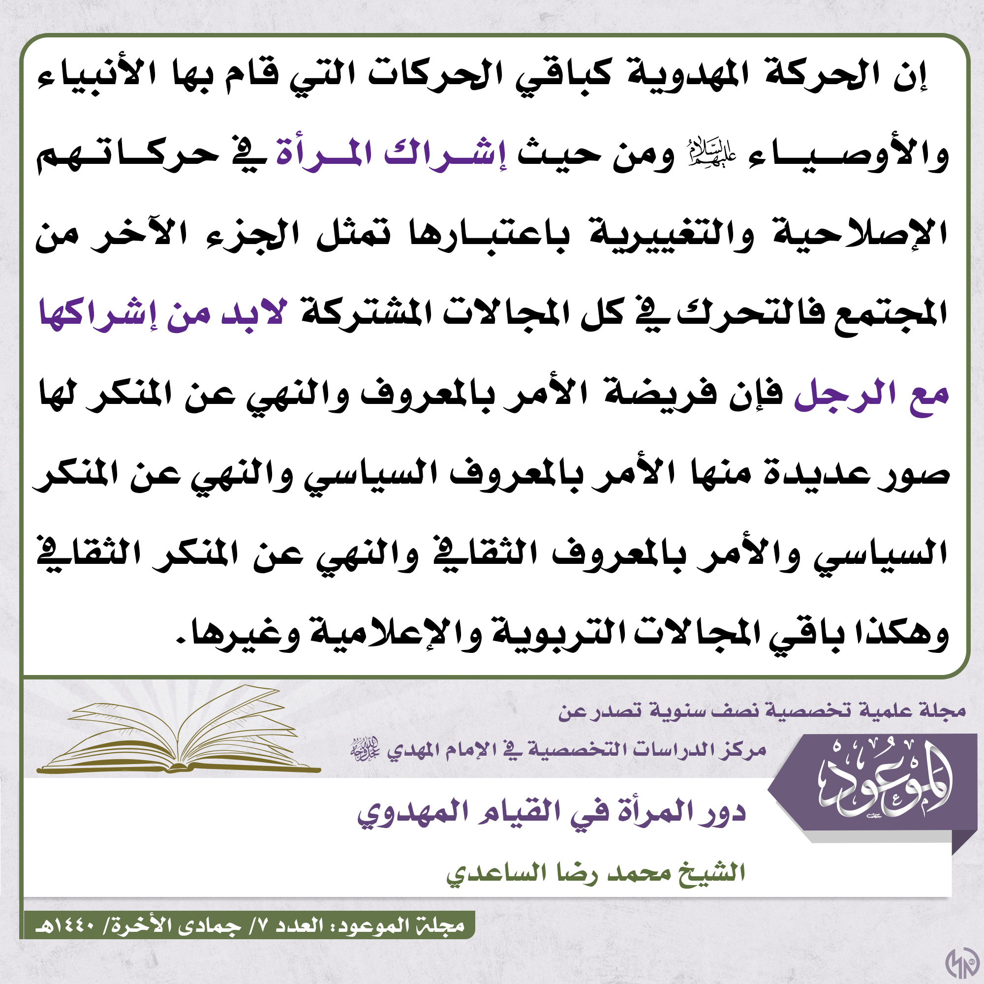 ? مقتطف من مقال: دور المرأة في القيام المهدوي