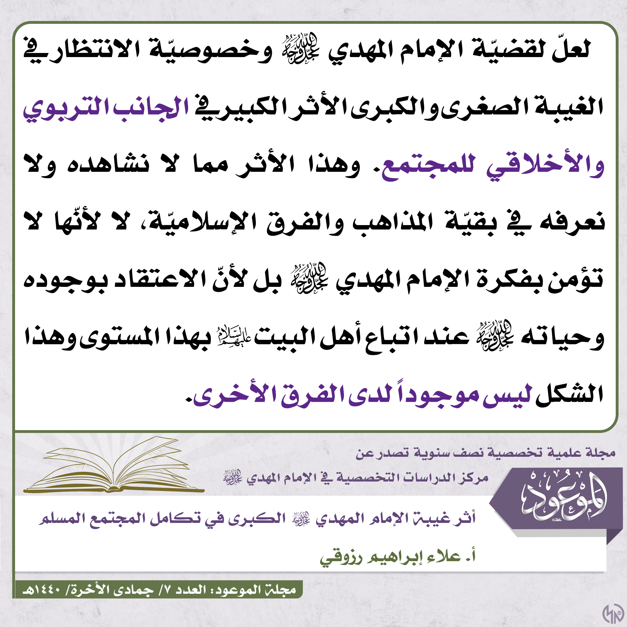 ? مقتطف من مقال: أثر غيبة الإمام المهدي (عجّل الله فرجه) الكبرى في تكامل المجتمع المسلم