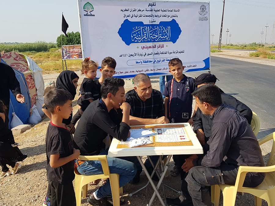 نشر مركز القرآن الكريم في العتبة العلوية المقدسة بالتعاون مع اتحاد الروابط والتجمعات القرآنية في العراق (٤٤) إستراحة قرآنية ضمن مشروع الاستراحة القرآنية في زيارة الأربعين.