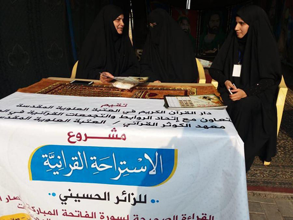 وأشارت حيدر "إلى أن تلك المحطات تضمنت فعاليات عدة منها تصحيح القراءة لسورتي الفاتحة والتوحيد وإقامة المسابقات القرآنية التي تنشر ثقافة القرآن الكريم بين الزائرات ويضاف لهذه الأنشطة إقامة المحافل القرآنية التي تنشر الثقافة القرآنية وسط جموع الزائرات".
