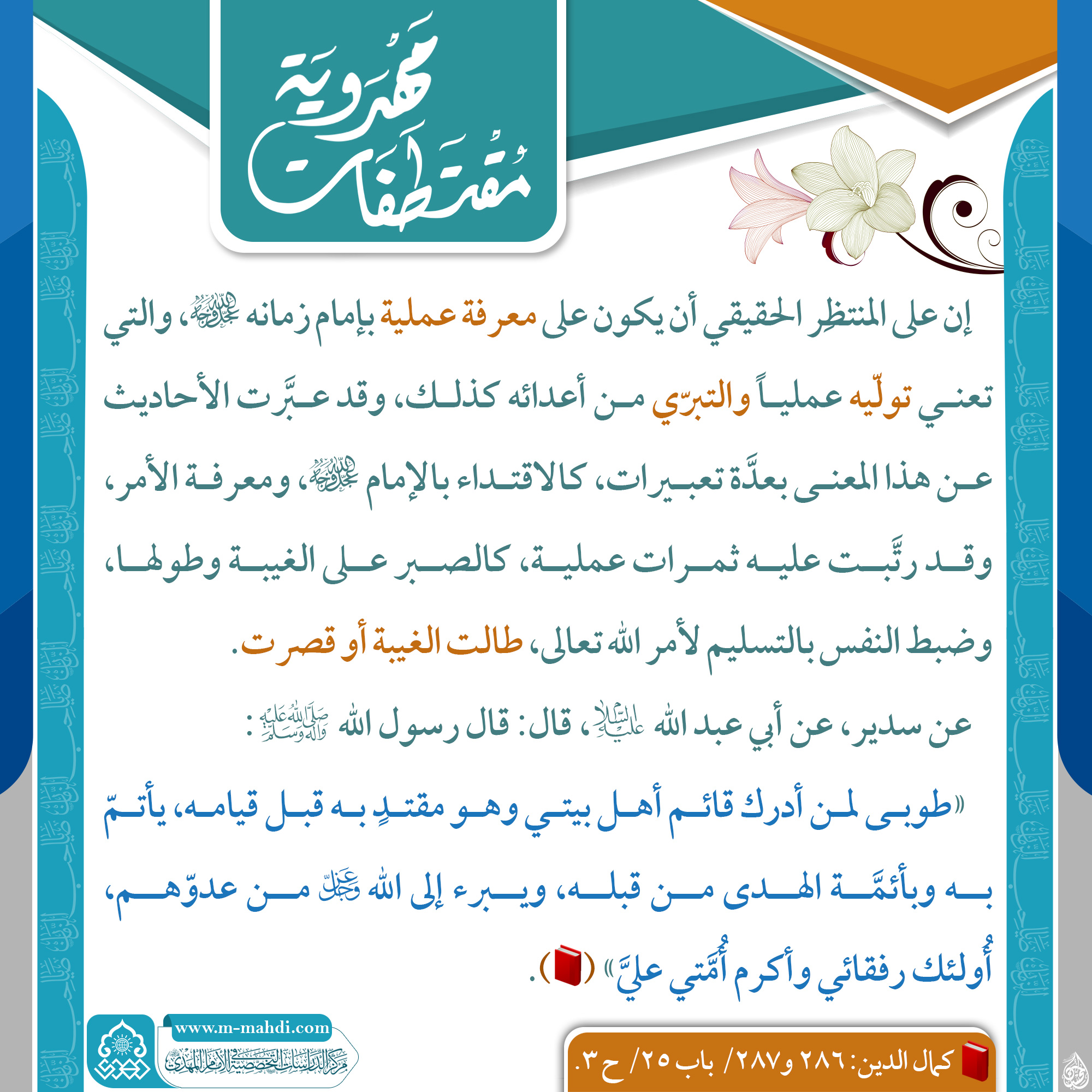 بسم الله الرحمن الرحيم اللهم كن لوليك الحجة بن الحسن صلواتك عليه وعلى آبائه في هذه الساعة وفي كل ساعة وليا وحافظا وقائدا وناصرا ودليلا وعينا حتى تسكنه ارضك طوعا وتمتعه فيها طويلا