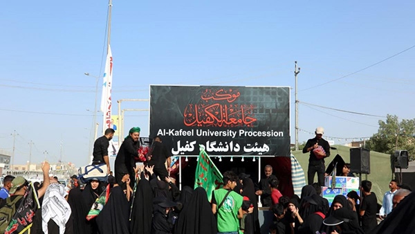 يتواصلُ موكبُ جامعة الكفيل التابعة لهيأة التربية والتعليم العالي في العتبة العبّاسية المقدّسة في محافظة النجف الأشرف، ولليوم الثالث على التوالي بتقديم خدماته للزائرين القاصدين زيارة الأربعين، حيث يعتبر هذا الموكب أوّل محطّةٍ خدميّة للعتبة العبّاسية المقدّسة من هذا المحور.