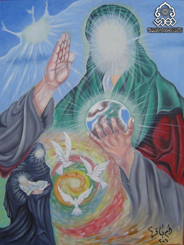 لوحة للفنانة ام باقر/ في مشاركتها في معرض الفنون التشكيلية في الامام المهدي عليه السلام في النجف الاشرف الذي اقامه المركز