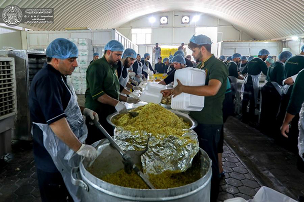 وقال مسؤول شعبة المطبخ المركزي التابع للعتبة العلوية المقدسة رياض الغزالي:" إن المطبخ يقوم بتقديم وجبات الطعام على الزائرين الوافدين الى النجف الاشرف مرورا الى كربلاء المقدسة حسب جدول معد مسبقا من اجل تنظيم الية العمل بشكل انسيابي".