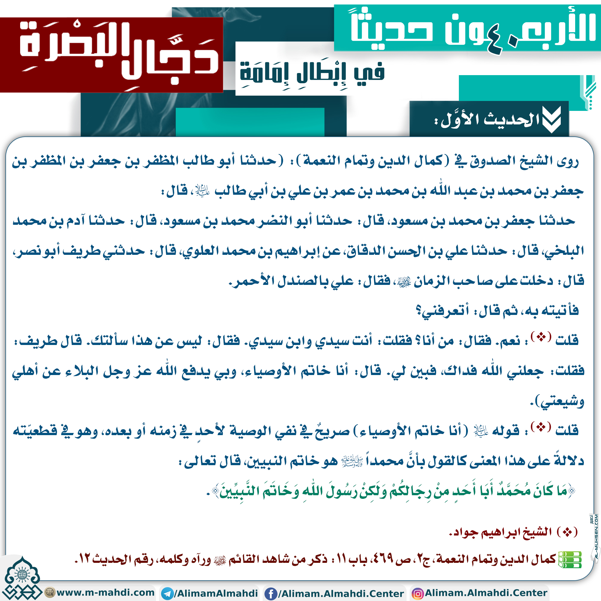 الأربعون حديثاً في إبطال إمامة دجال البصرة