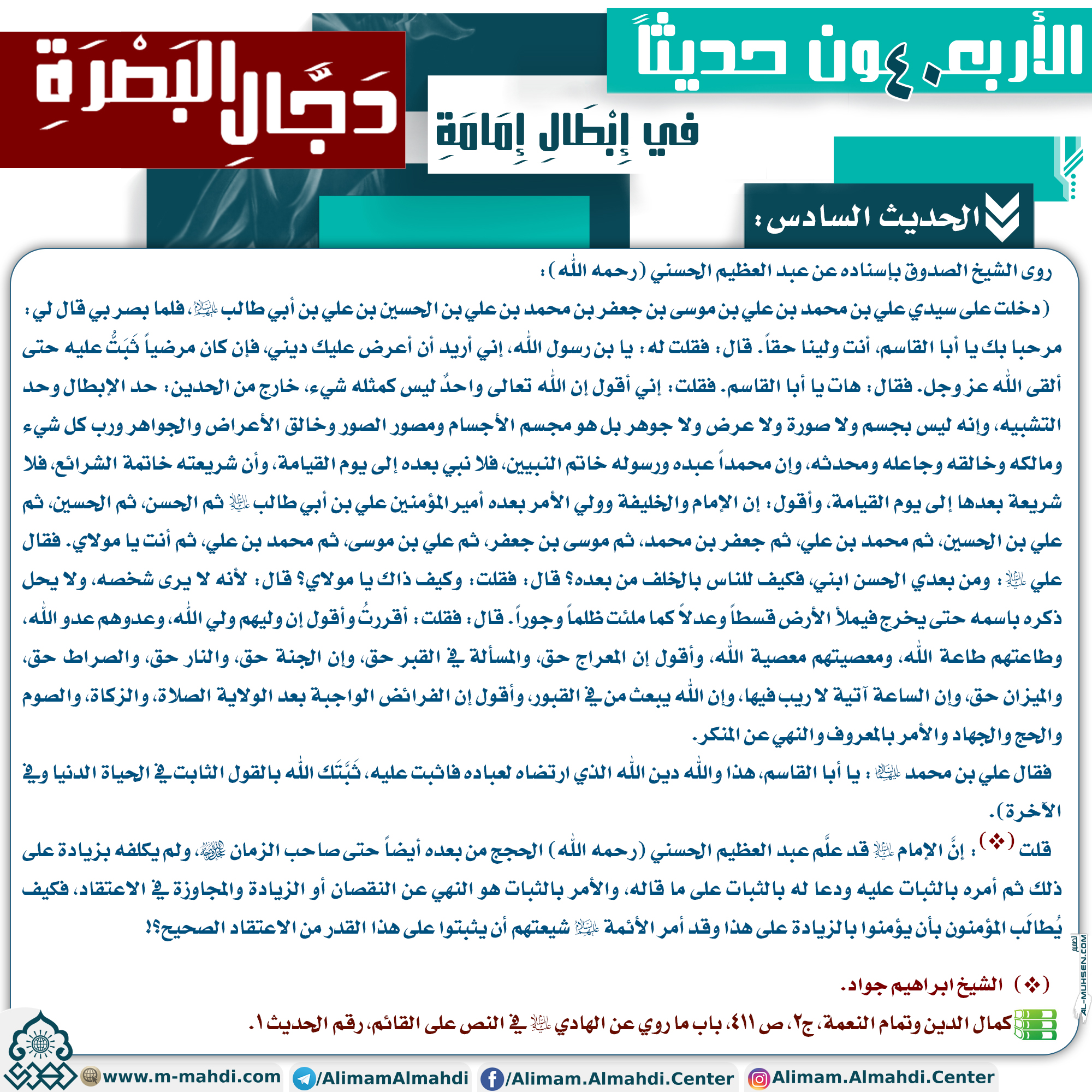 الأربعون حديثاً في إبطال إمامة دجال البصرة