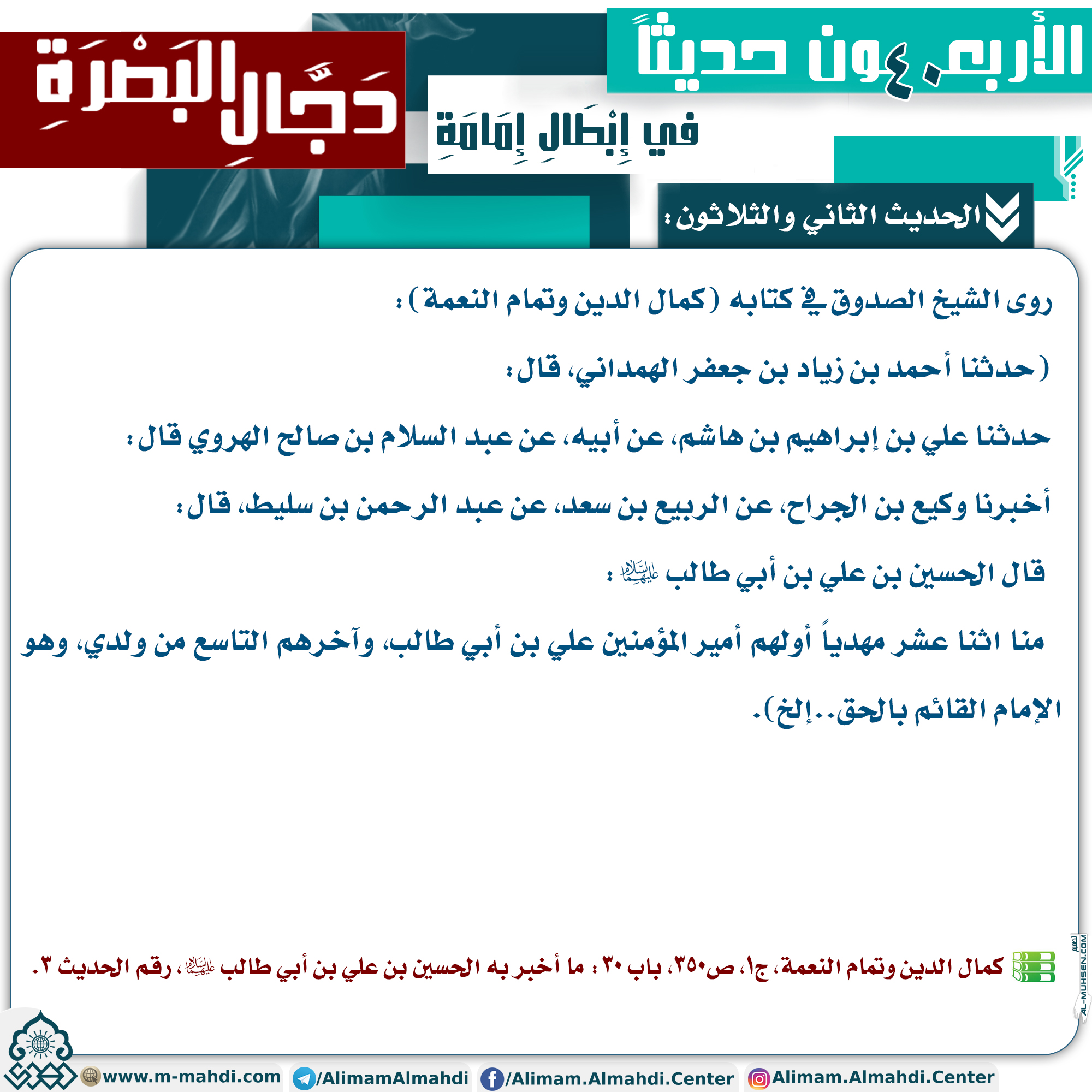 الأربعون حديثاً في إبطال إمامة دجال البصرة