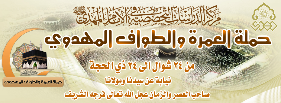 وايماناً من مركز الدراسات التخصصية في الإمام المهدي عليه السلام بايجاد هذه الحالة العظمى من الترابط المعنوي بين المؤمنين وإمامهم، يطلق المركز حملة (العمرة والطواف المهدوي) لإهداء عمرةٍ للإمام المهدي عليه السلام او طواف مع ركعتين من قبل حجّاج بيت الله الحرام ومعتمريه.