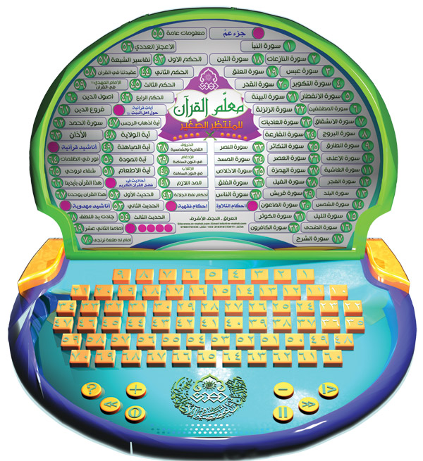 عبارة عن لابتوب للاطفال يحتوي على ٧٠ مفتاح من ضمنها ٣٧ مفتاح الجزء الثلاثين من القران الكريم، و ٥ مفتايح احكام التلاوة، وخمسة مفاتيح احكام فقهية، وخمسة مفاتيح آيات قرانية حول اهل البيت عليهم السلام، وثلاثة مفاتيح احاديث في فضل القران الكريم، ومعلومات عامة والاعجاز العددي وتفاسير الشيعة وعقيدتنا في القران الكريم والامام المهدي عليه السلام في القران الكريم وفروع الدين، والآذان وسورة الحمد، واربعة مفاتيح تحتوي على اناشيد قرانية، وثلاثة مفاتيح تحتوي على اناشيد مهدوية.
