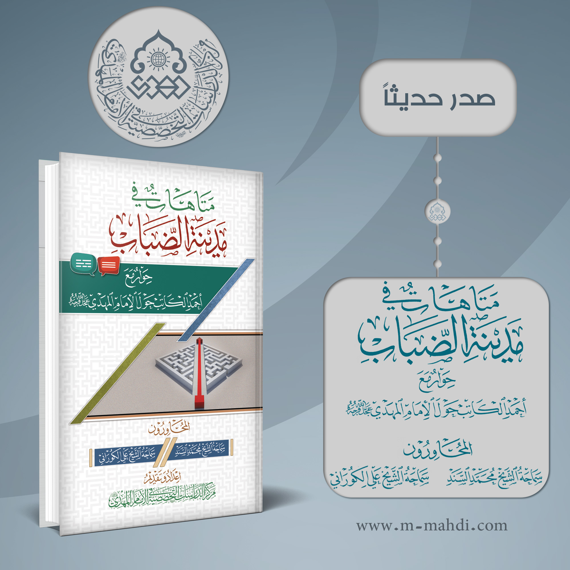 صدر حديثاً الطبعة الثانية من كتاب متاهات في مدينة الضباب - حوارٌ مع أحمد الكاتب حول الإمام المهدي (عجّل الله فرجه)، المحاوون سماحة الشيخ محمد السند وسماحة الشيخ علي الكوراني، من اعداد وتحقيق مركز الدراسات التخصصية في الإمام المهدي (عجّل الله فرجه).