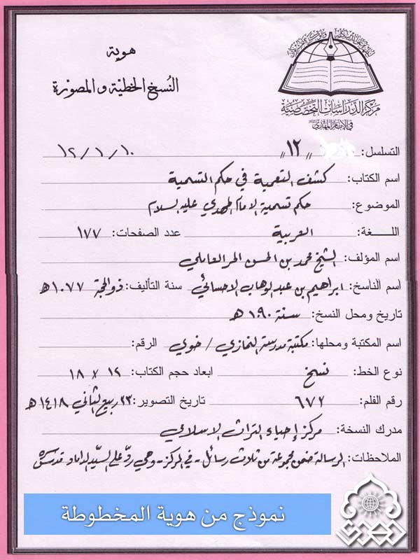 نموذج من هوية المخطوطات