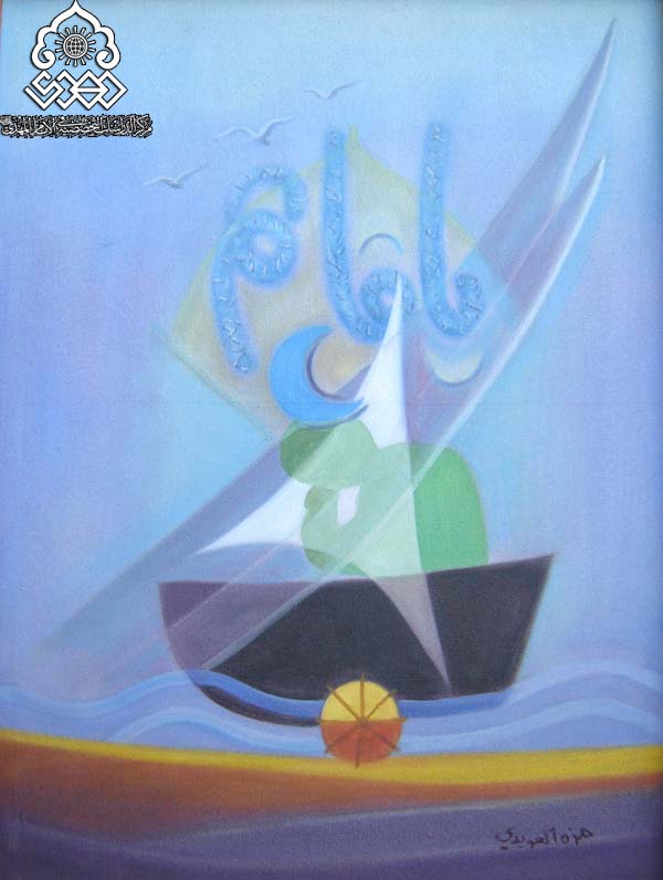 لوحة للفنان حمزة العويدي/ في مشاركته في معرض الفنون التشكيلية في الامام المهدي عليه السلام في النجف الاشرف الذي اقامه المركز