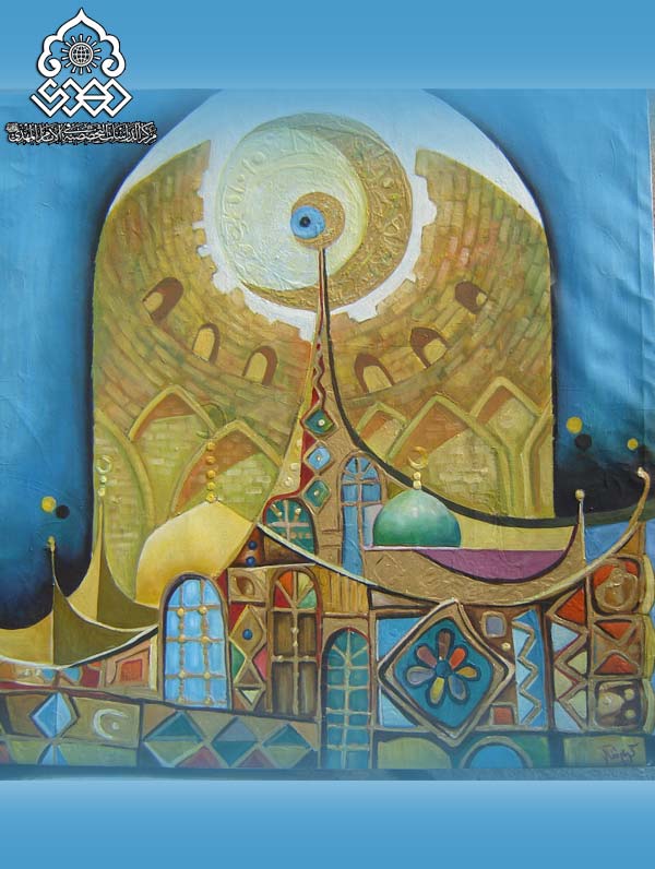 لوحة للفنان عبد الكريم الشمري/ في مشاركته في معرض الفنون التشكيلية في الامام المهدي عليه السلام في النجف الاشرف الذي اقامه المركز