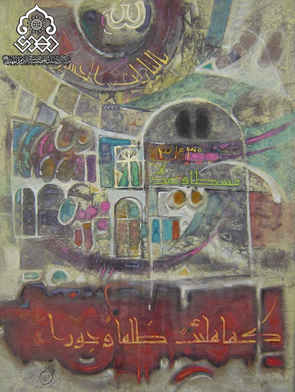 لوحة للفنان فاضل البغدادي/ في مشاركته في معرض الفنون التشكيلية في الامام المهدي عليه السلام في النجف الاشرف الذي اقامه المركز