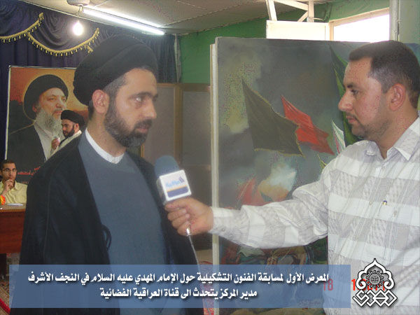 المعرض الاول لمسابقة الفنون التشكيلية / مدير المركز مع قناة العراقية