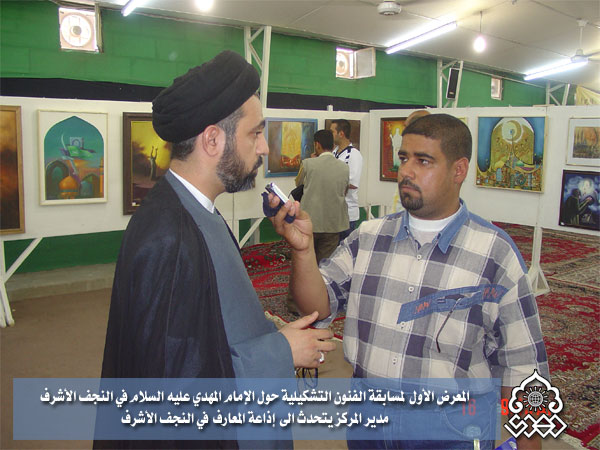 المعرض الاول لمسابقة الفنون التشكيلية / مدير المركز مع اذاعة المعارف
