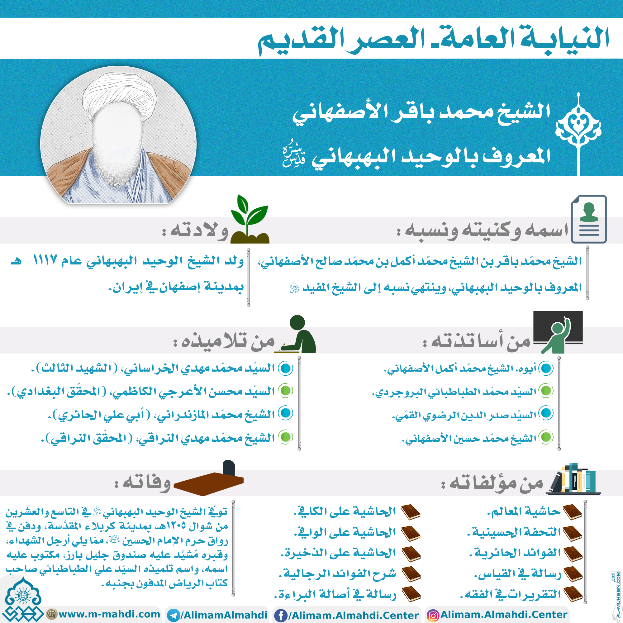 الشيخ محمّد باقر بن الشيخ محمّد أكمل بن محمّد صالح الأصفهاني، المعروف بالوحيد البهبهاني، وينتهي نسبه إلى الشيخ المفيد (قدس سره).