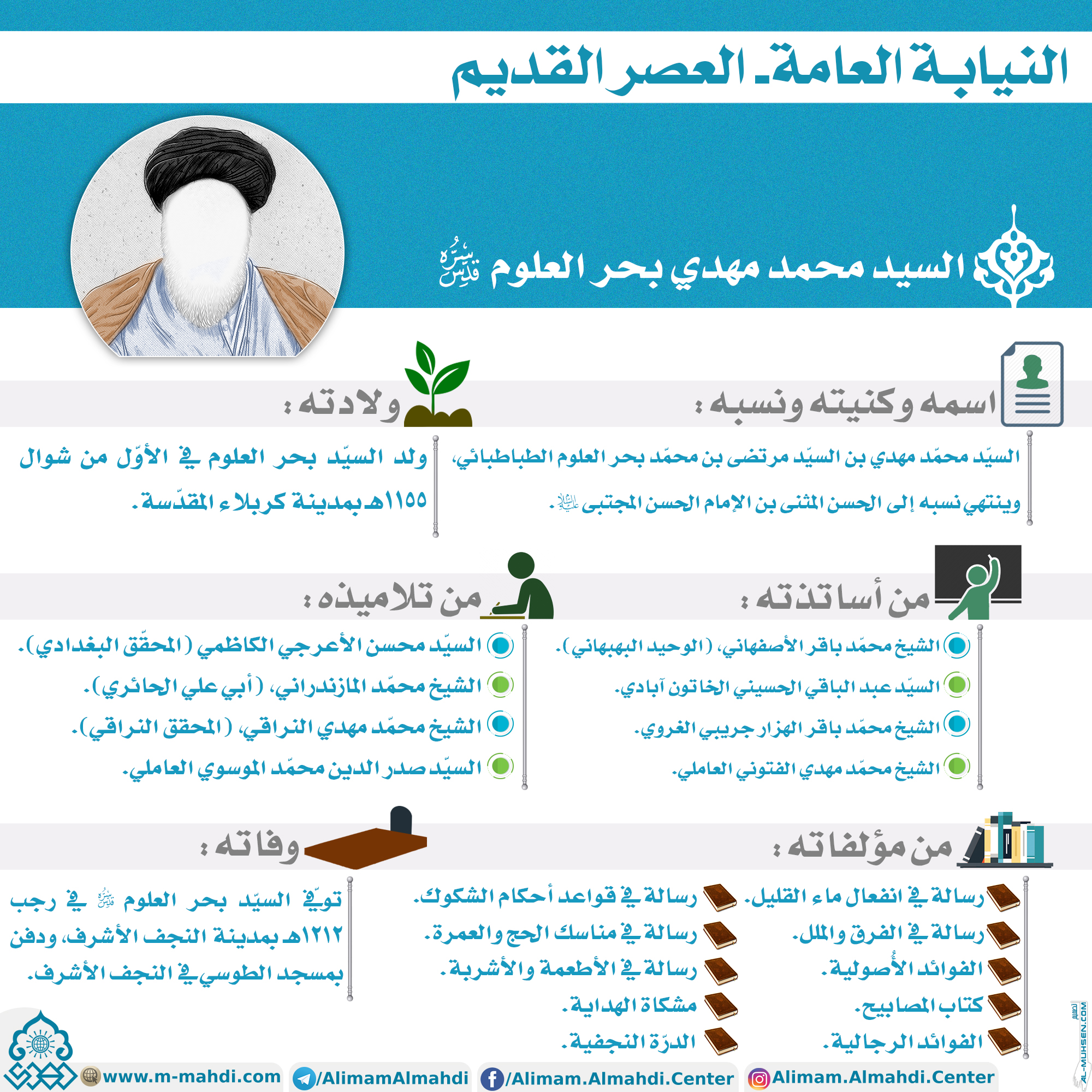 ولد السيّد بحر العلوم في الأوّل من شوال ١١٥٥هـ بمدينة كربلاء المقدّسة.