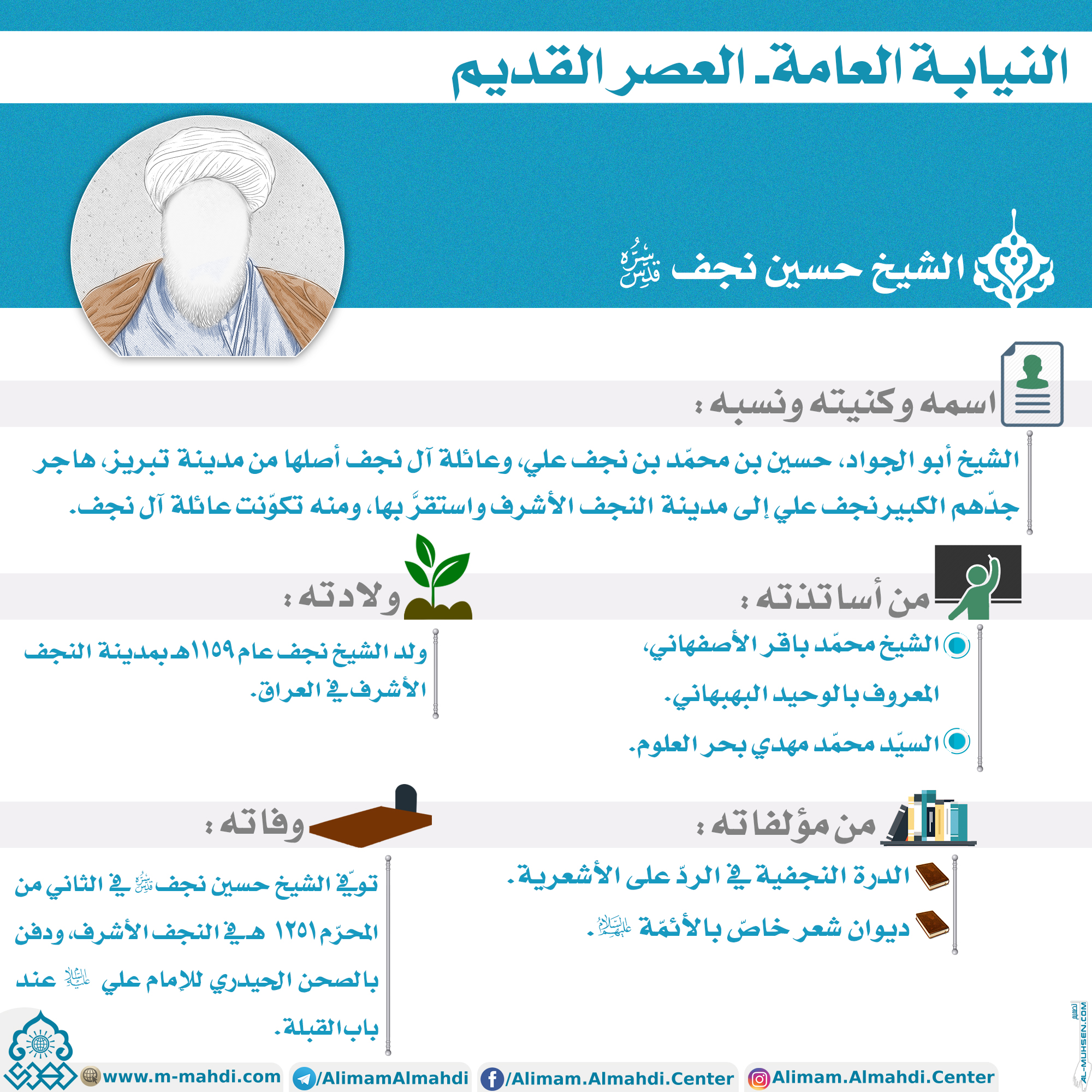 ولد الشيخ نجف عام ١١٥٩هـ بمدينة النجف الأشرف في العراق.