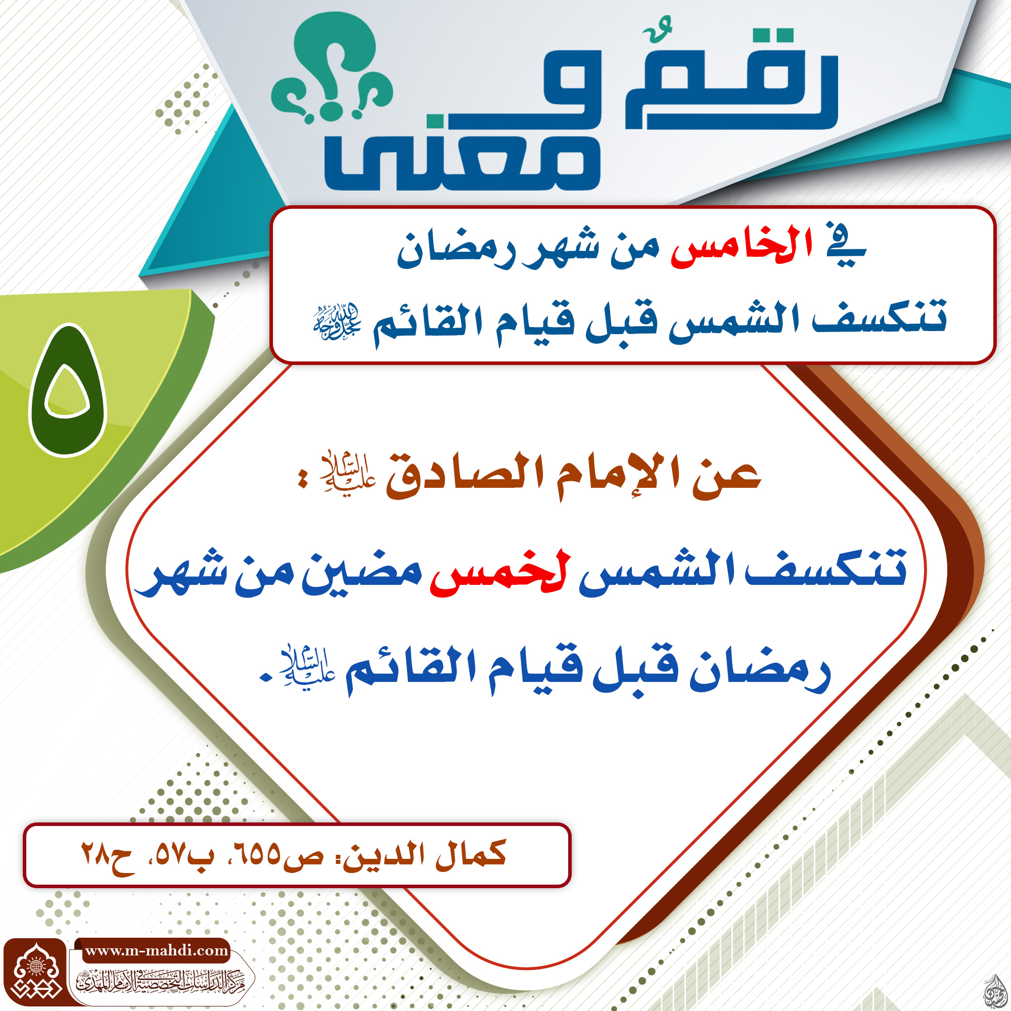 ? في الخامس من شهر رمضان تنكسف الشمس قبل قيام القائم (عجّل الله فرجه).