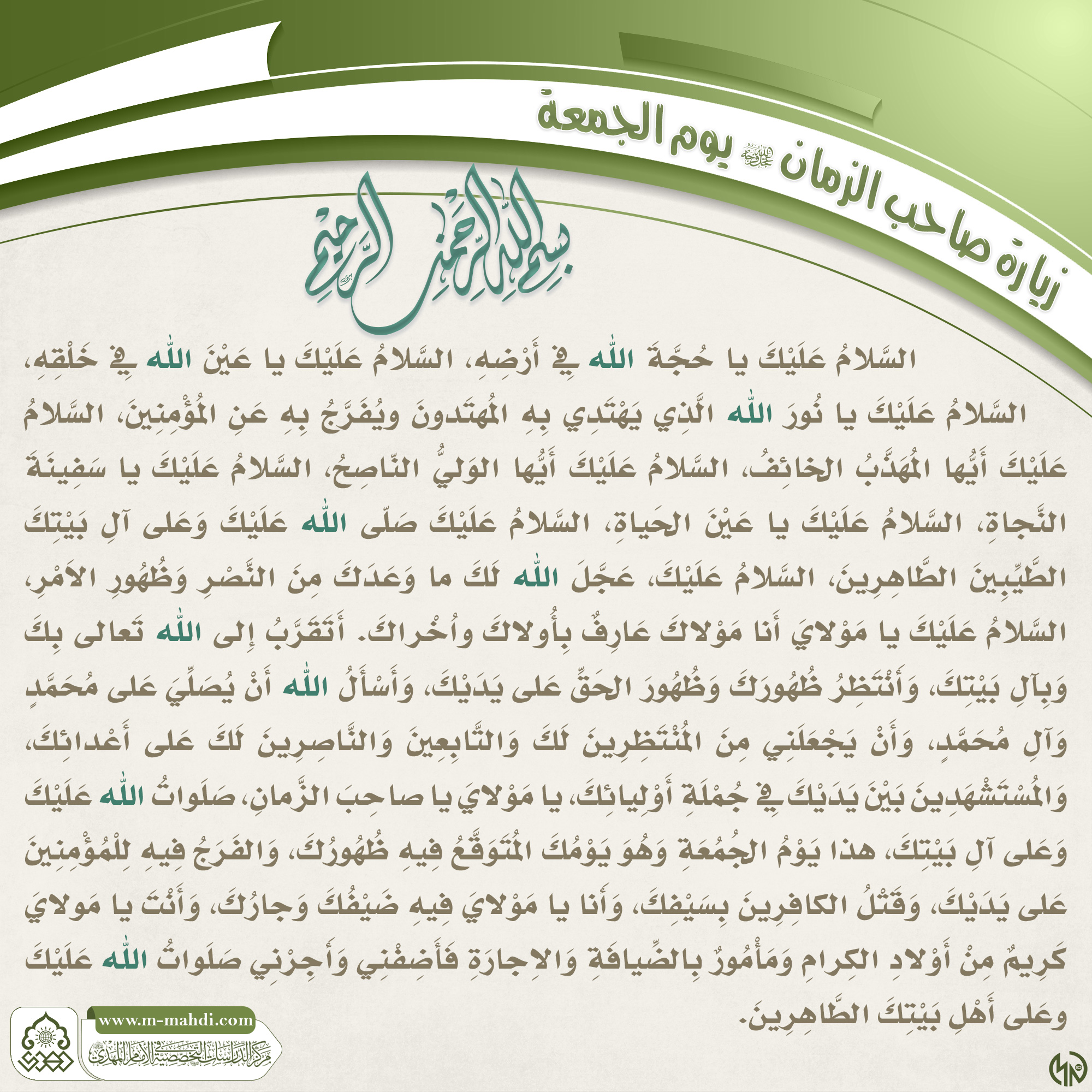 زيارة الامام المهدي عليه السلام في يوم الجمعة