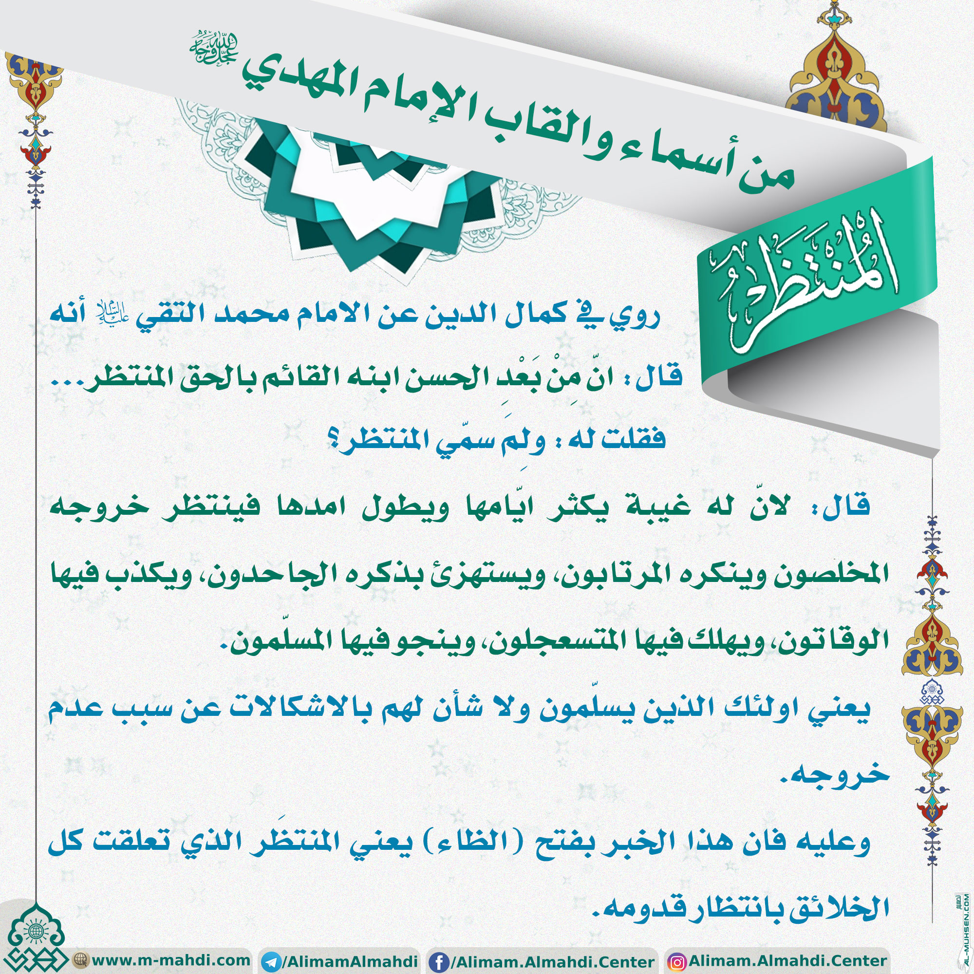 أسماء وألقاب الإمام المهدي (عجّل الله فرجه) - ١٨