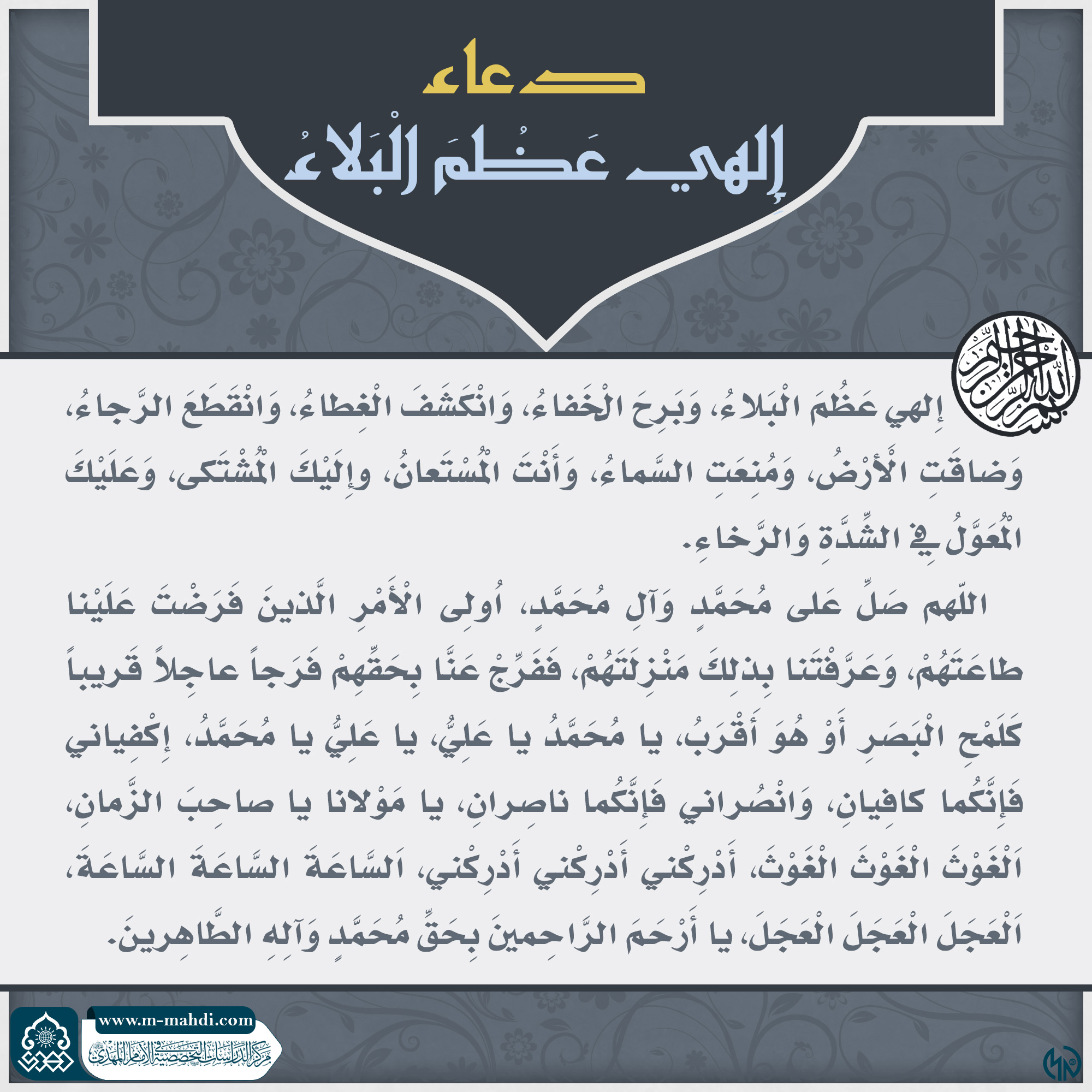 دعاء صاحب الامر عليه السلام (الهي عظم البلاء...)