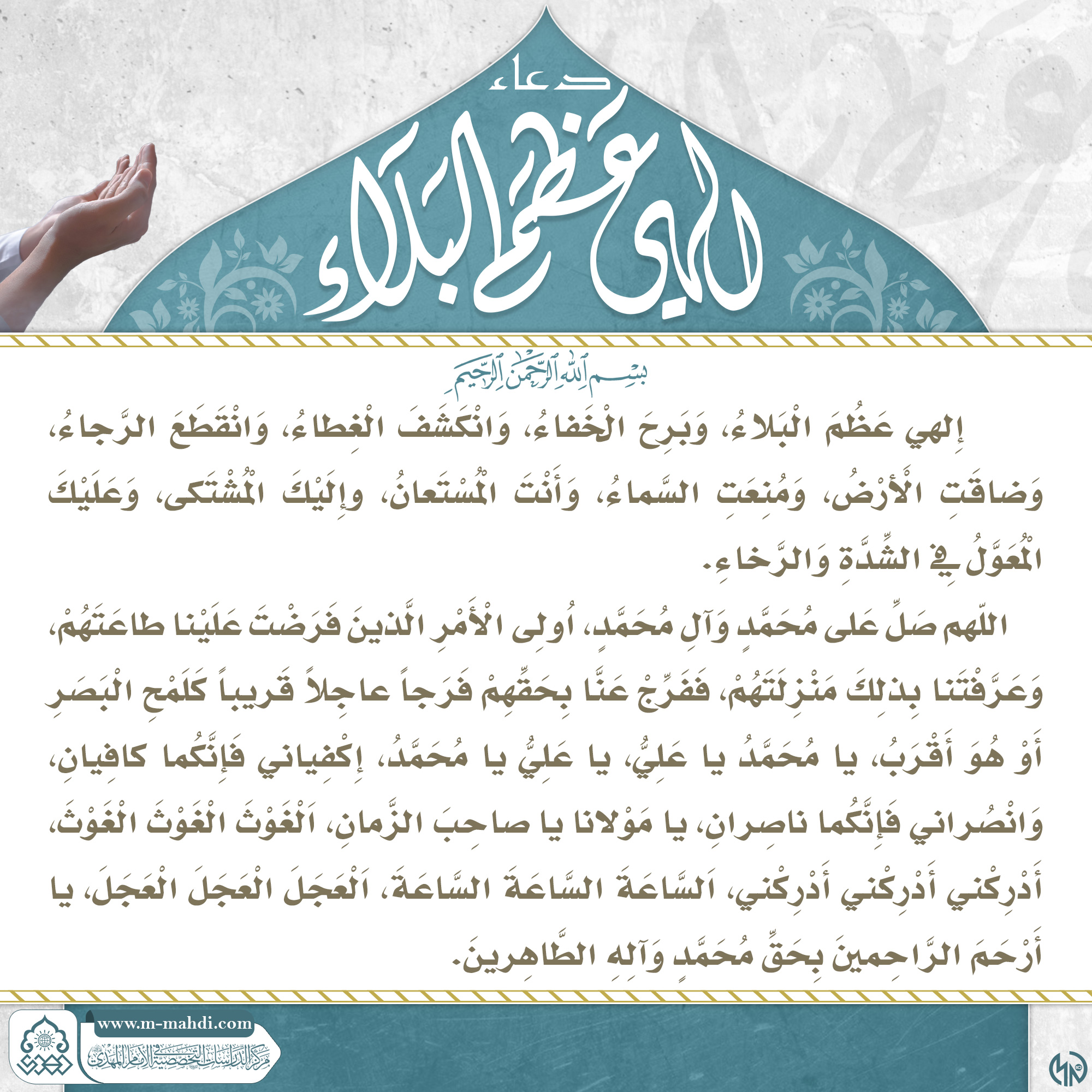 دعاء صاحب الامر عليه السلام (الهي عظم البلاء...)