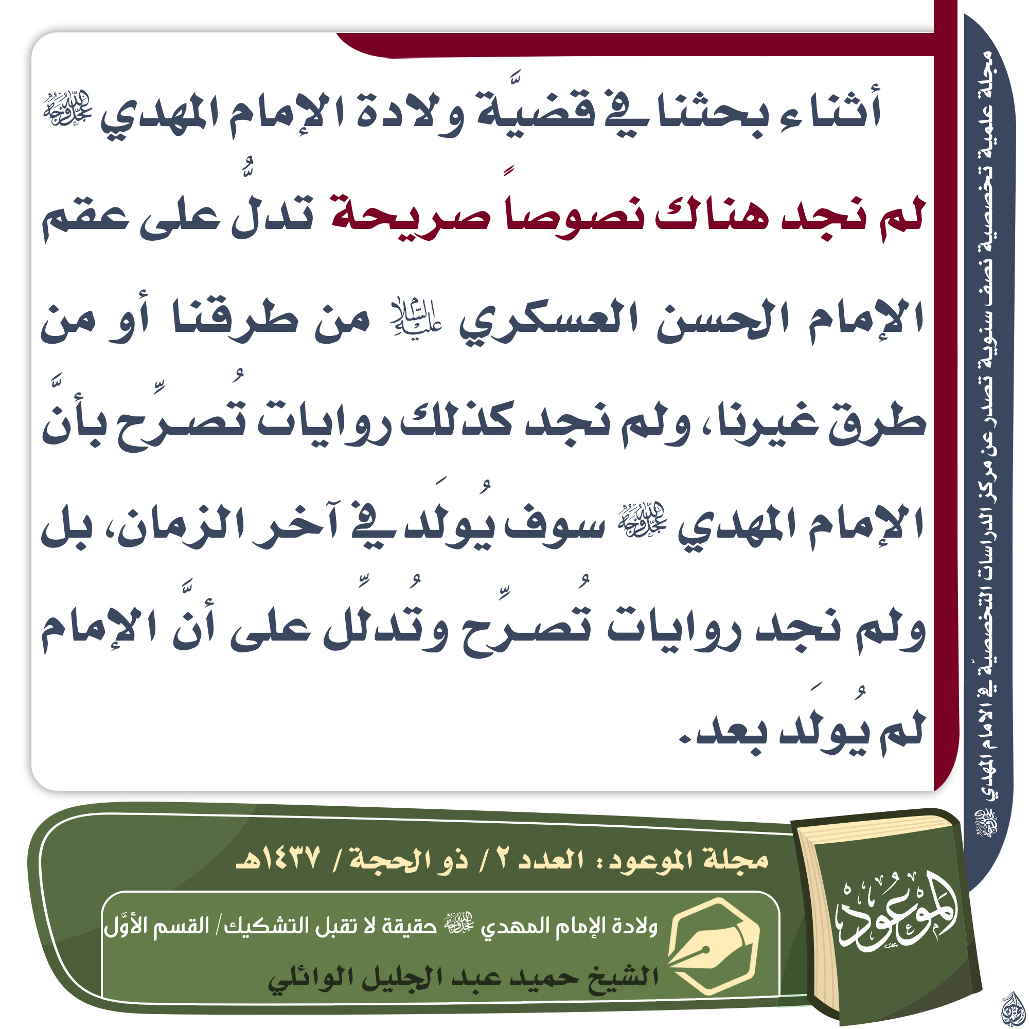 ? مجلة الموعود العدد ٢/ ذو الحجة/ ١٤٣٧ هـ