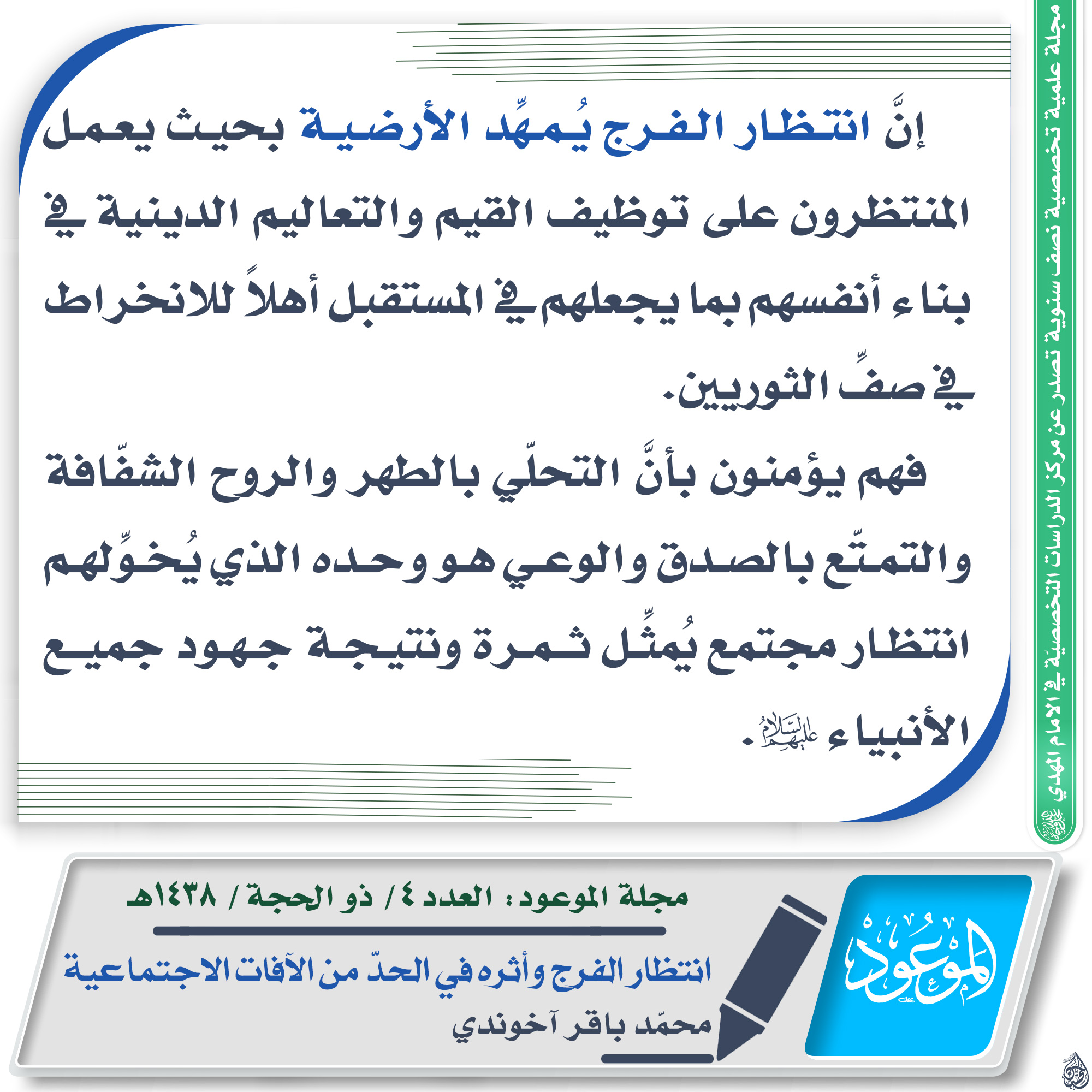 ? مقتطف من مقال: انتظار الفرج وأثره في الحدّ من الآفات الاجتماعية