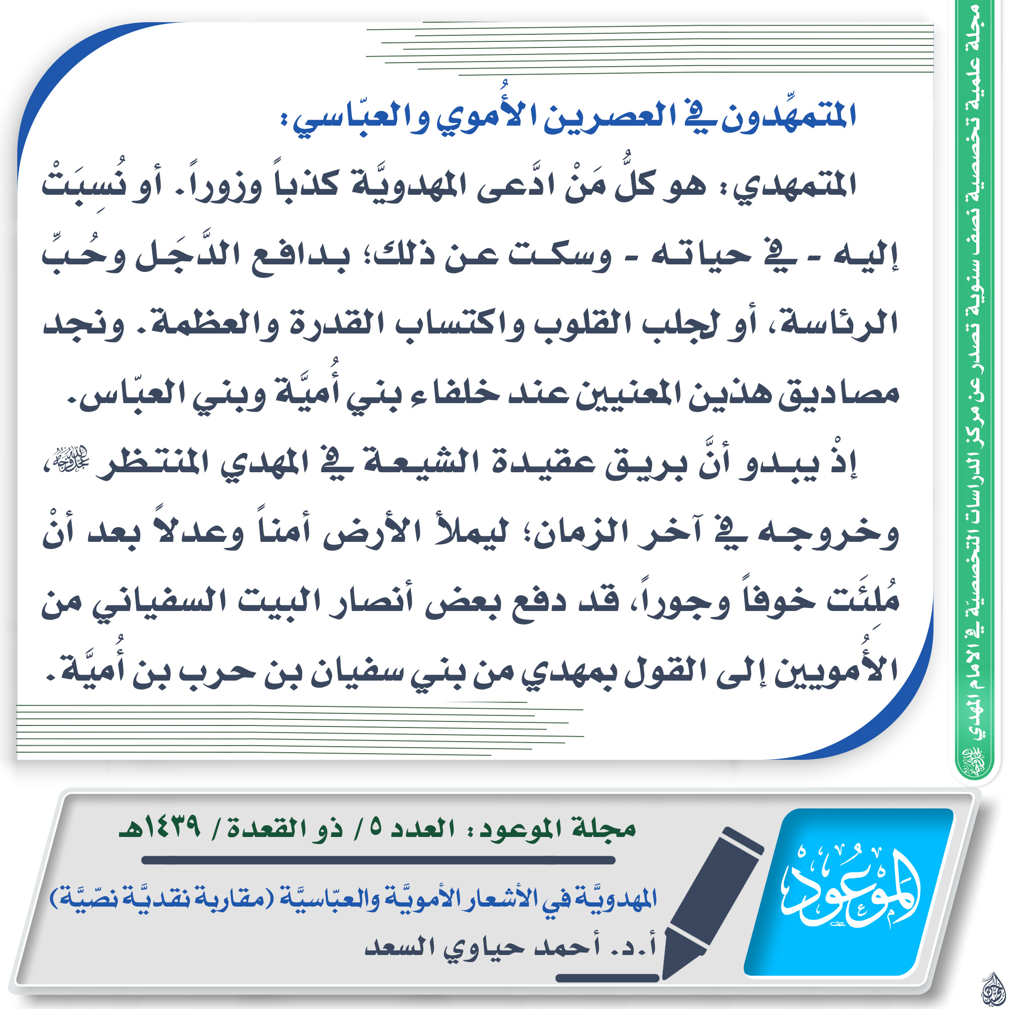 ? مقتطف من مقال: المهدويَّة في الأشعار الأمويَّة والعبّاسيَّة (مقاربة نقديَّة نصّيَّة)