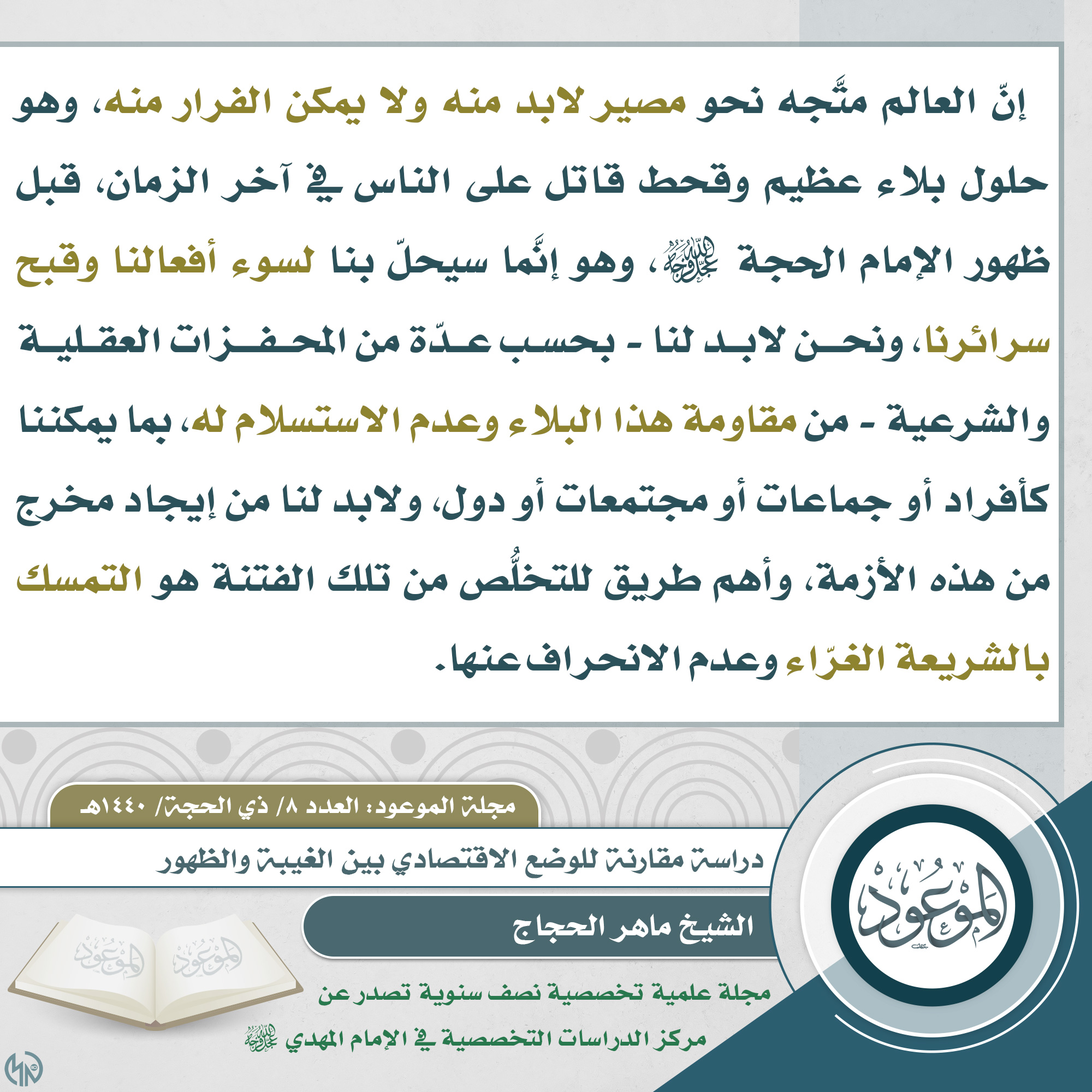 ? مقتطف من مقال: دراسة مقارنة للوضع الاقتصادي بين الغيبة والظهور