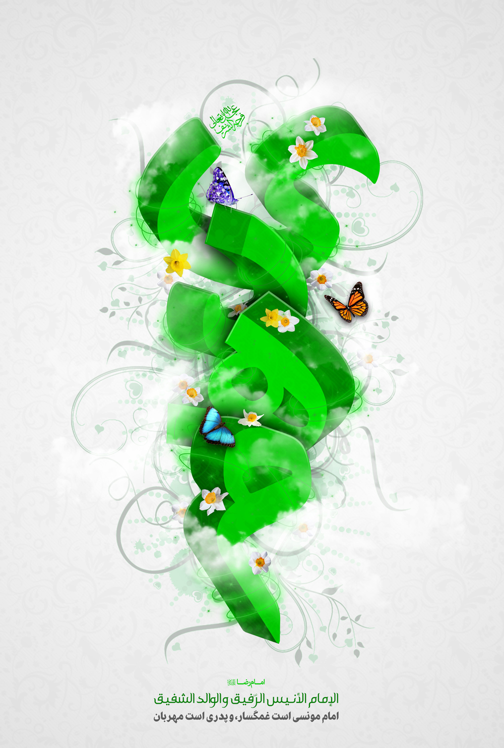 به نام خداوند بخشنده مهربان بار الها: ولی امرت امام زمان حجت بن الحسن را که درودهایت بر او وپدرانش باد در این هنگام وبرای همیشه سرپرست ونگهدار ورهبر ویاور وراهنما ونگاهبان باش تا گیتی را به فرمان او آوری وتا دیر زمان، بهره مندش گردانی | اَللّـهُمَّ کنْ لِوَلِیک الْحُجَّةِ بْنِ الْحَسَنِ صَلَواتُک عَلَیهِ وَعَلی آبائِه فی هذِهِ السَّاعَةِ وَفی کلِّ ساعَة وَلِیاً وَحافِظاً وَقائِداً وَناصِراً وَدَلیلاً وَعَیناً حَتّی تُسْکنَهُ اَرْضَک طَوْعاً وَتُمَتِّعَهُ فیها طَویلاً