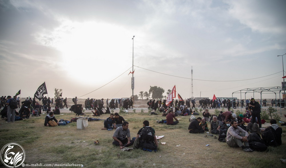 (٢١٤) خدام أبي عبد الله الحسين عليه السلام يفترشون الأرض لراحة اقدامهم