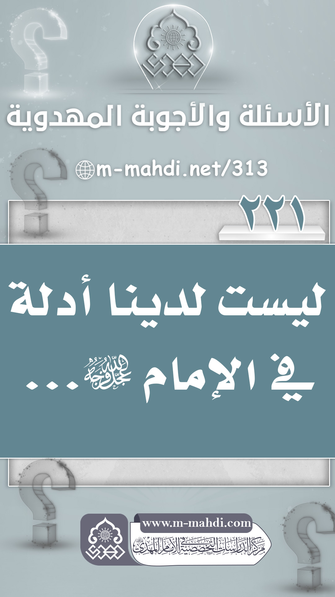 (٢٢١) ليست لدينا أدلة في الإمام (عجّل الله فرجه)...