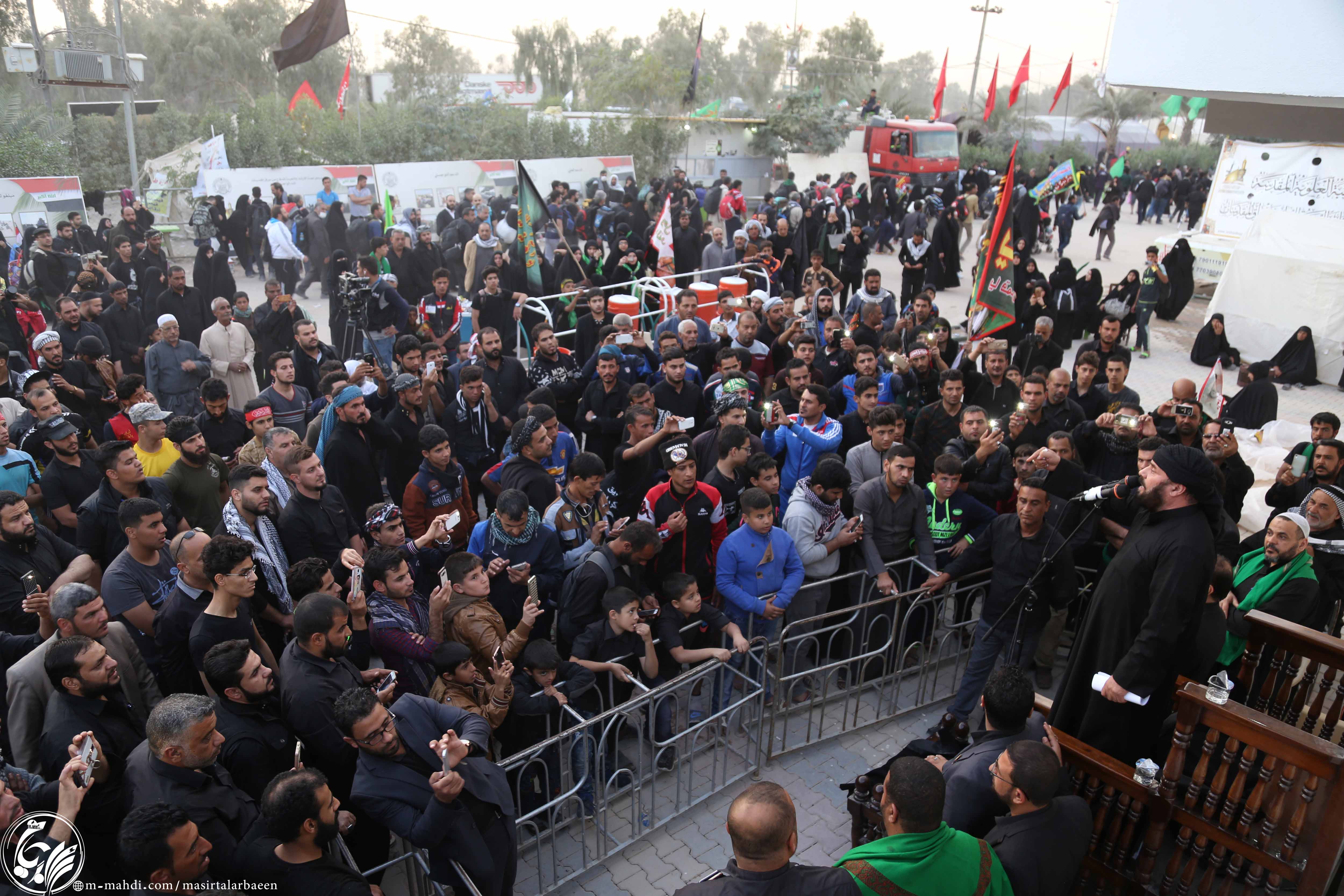 الرادود الحسيني الحاج جليل الكربلائي في الموقع المركزي للمشروع التبليغي للحوزة العلمية في زيارة الأربعين