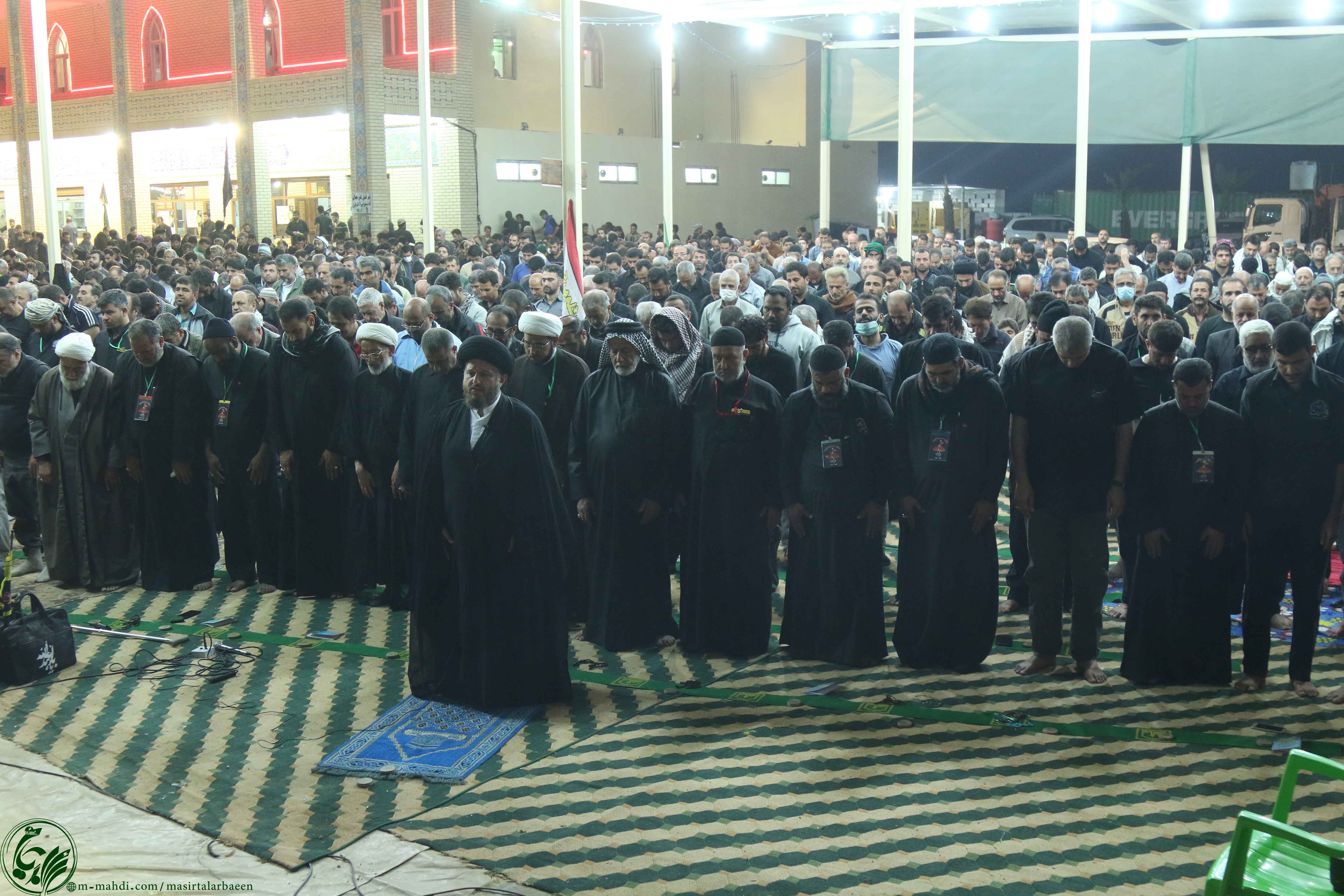 آية الله السيد حسين الحكيم يؤم المصلين في طريق يا حسين